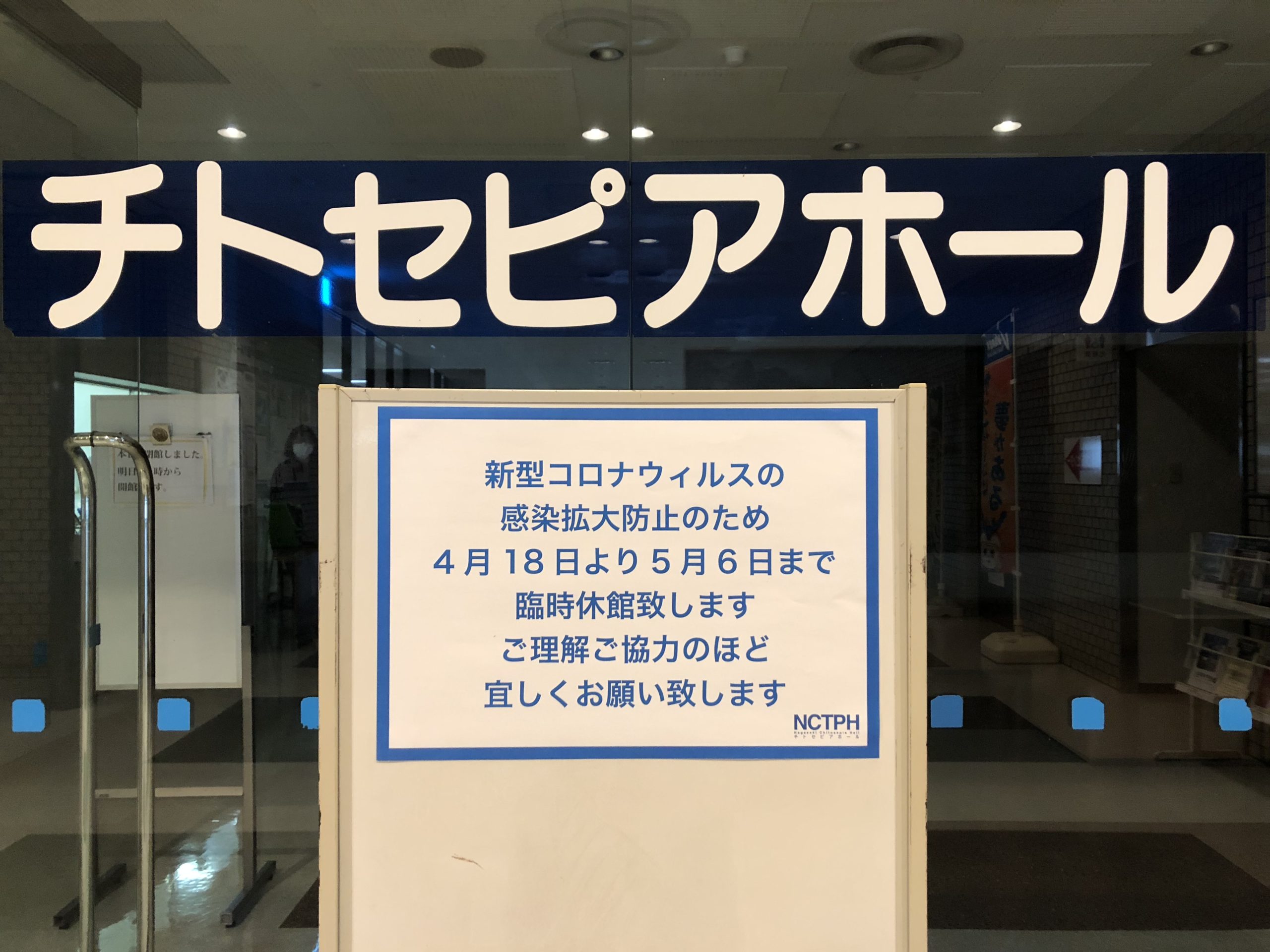 【重要】休館のお知らせ 長崎市チトセピアホールは新型コロナウィルス感染拡大防止のため下記の期間、臨時休館いたします。 ■期間 令和2年4月18日(土)~5月6日(水・休) ■休館中のお問合せ 電話:095-842-2700(受付時間:9:00~17:30) なお、上記の観点から新規での利用予約も令和2年5月31日(日)までは受け付けできません。 ご理解ご協力の程よろしくお願いいたします。