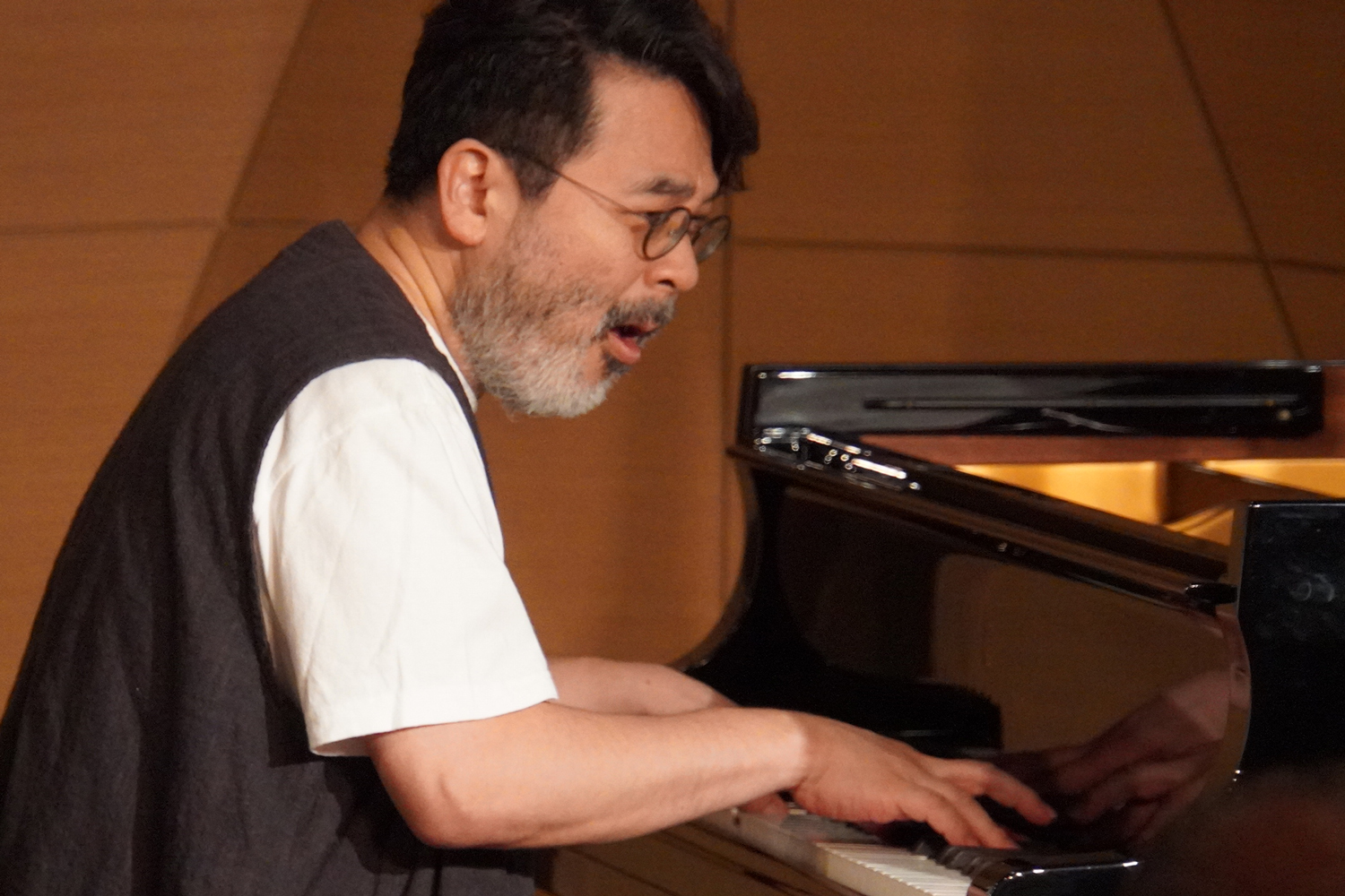 短いMCを挟み、1stアルバムに収録のたゆたうような曲調の“Nigella”、うってかわって性急なやり取りの応酬が続く“Doppio Movimento”と、林正樹曲を続けて披露。全く性格の異なる二曲に作曲家としての振れ幅の広さ、引き出しの豊かさが感じられます。