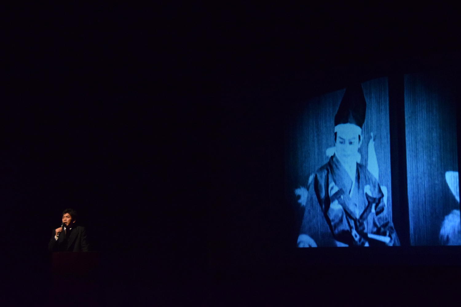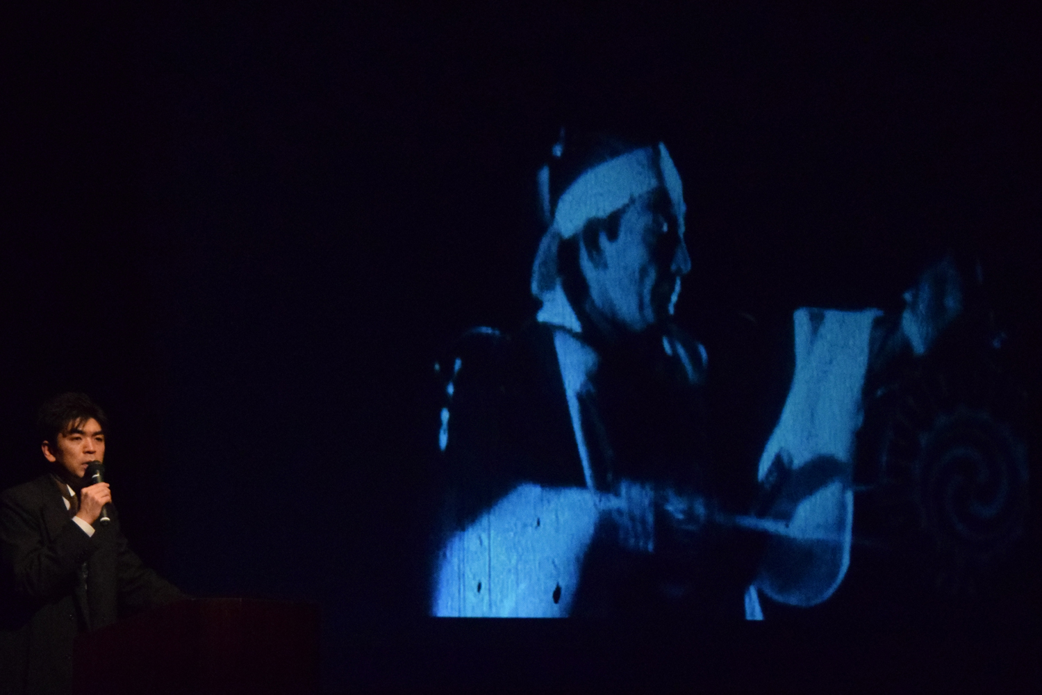 こちらでは、日本における無声映画の成立からその歴史にはじまり、頼光さんが活動弁士を志したエピソードも披露。そして「血煙高田の馬場」(監督:伊藤大輔/1928年/日活京都撮影所)、「国士無双」(監督:伊丹万作/1932年/日活)、「ジャックと豆の木」(監督:E・S・ポーター、G・S・フレミング/1902年/エジソン社)、「カメラマンの復讐」(監督:ヴワディスワフ・スタレーヴィチ/1912年/ソ連)と豪華四本立ての実演もまじえた大充実の講座でした。