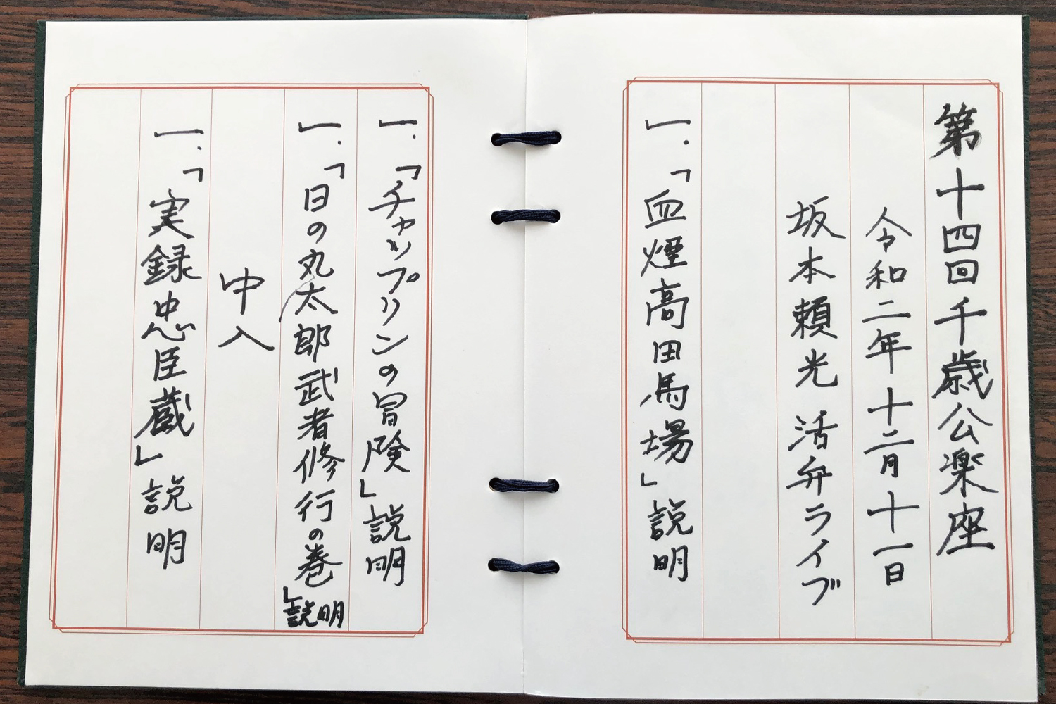松の廊下の刃傷事件に始まり、お家明け渡し、山科での放蕩、東下りと数々の名場面が頼光さんの名調子によって語られます。