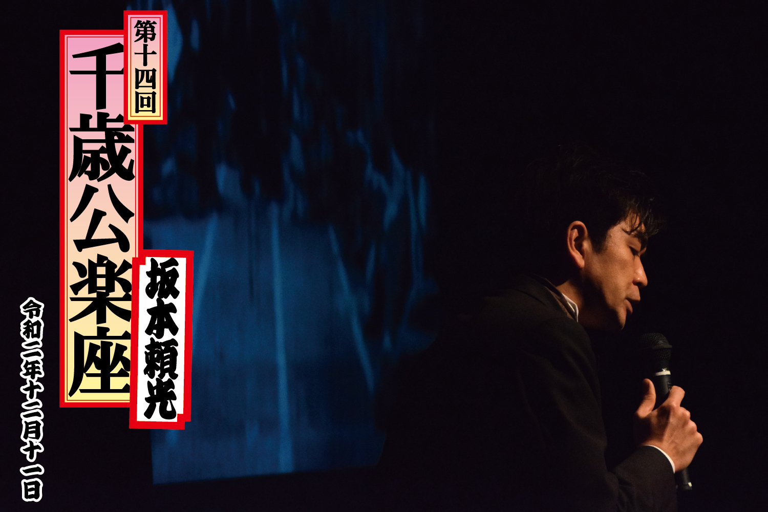 長崎市チトセピアホールでは自主事業として12月11日に「千歳公楽座 坂本頼光 活弁ライブ」を開催しました。かつて街場にあった寄席のように噺家さんの息遣いまでもが伝わるような距離で落語を聴くというコンセプトで始まったこの会。今回は趣向を変えて、若き活動弁士として注目を集める坂本頼光さんをお迎えしての無声映画の上映会です。長崎市内では初の公演ということで期待が高まる中、会は始まります。