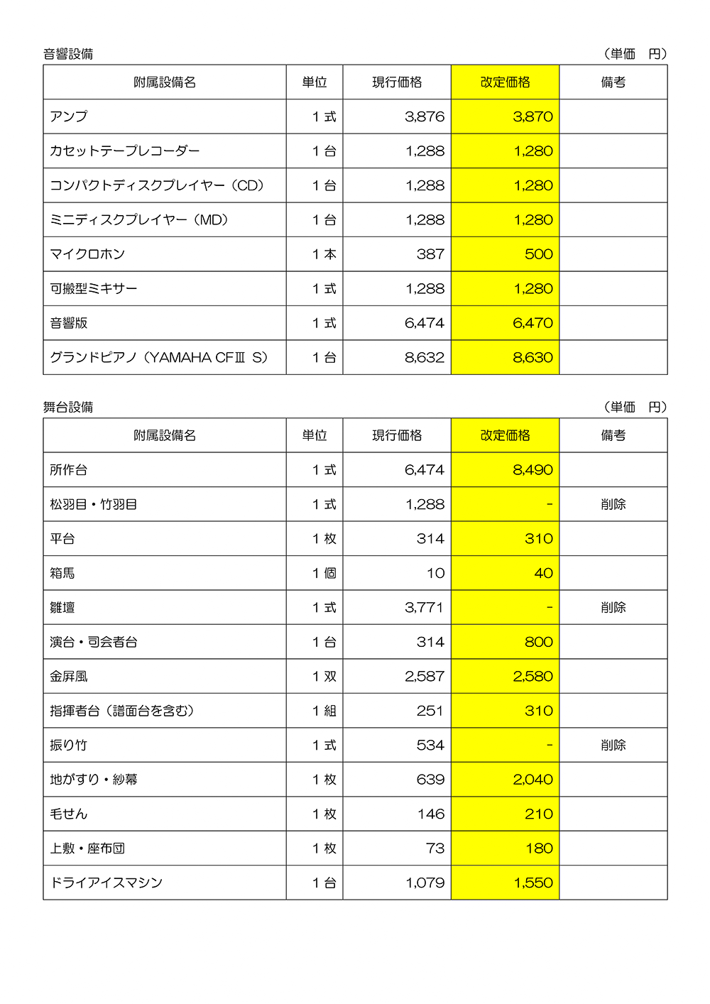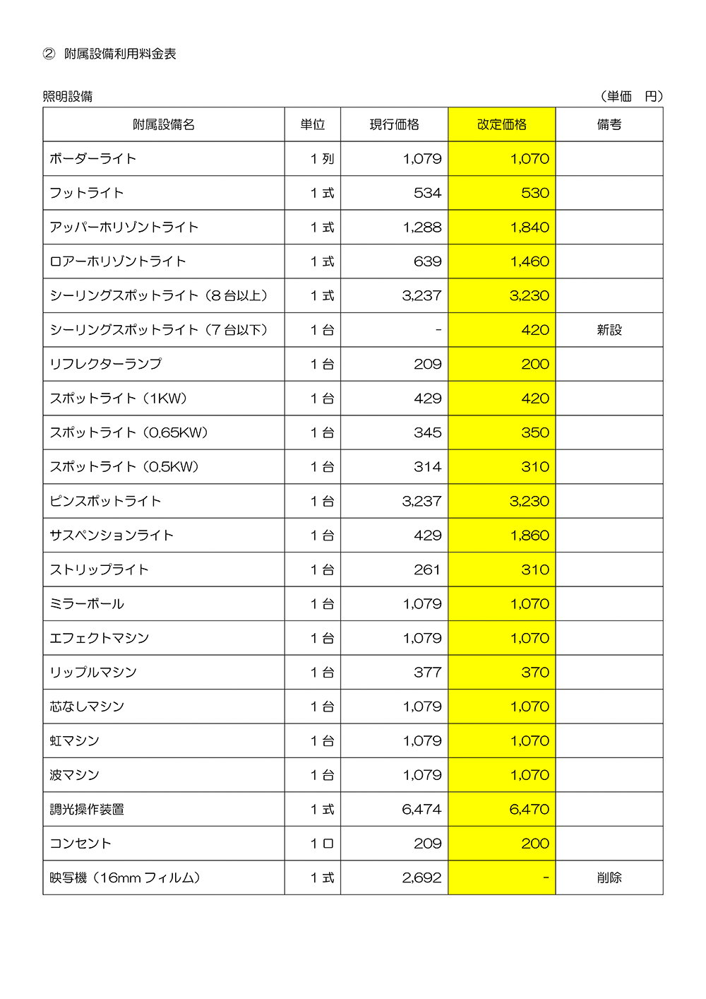 *改定後の使用料には、冷暖房料金を含みます。