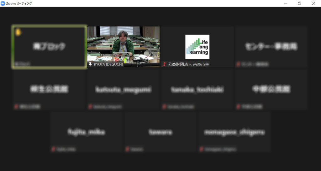 12 月 28 日、館長の出口が奈良市生涯学習財団の職員研修で講義を行いました。奈良市の公民館職員約 70 名を対象としたこの研修において「公民館に地域の“いま”を実装する」というテーマで、北公民館の講座企画や地域と協働した取り組み、公共ホール・チトセピアホールとの連携事業など実例を交え、ZOOM を通してお話させていただきました。